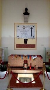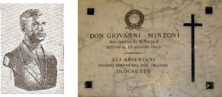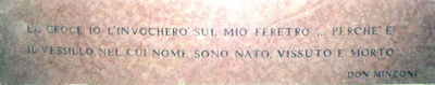 Nel marmo è riportato una frase da un Diario di Don Minzoni: “La croce io l’invocherò sul mio feretro … perché è il vessillo nel cui nome sono nato, vissuto e morto”.